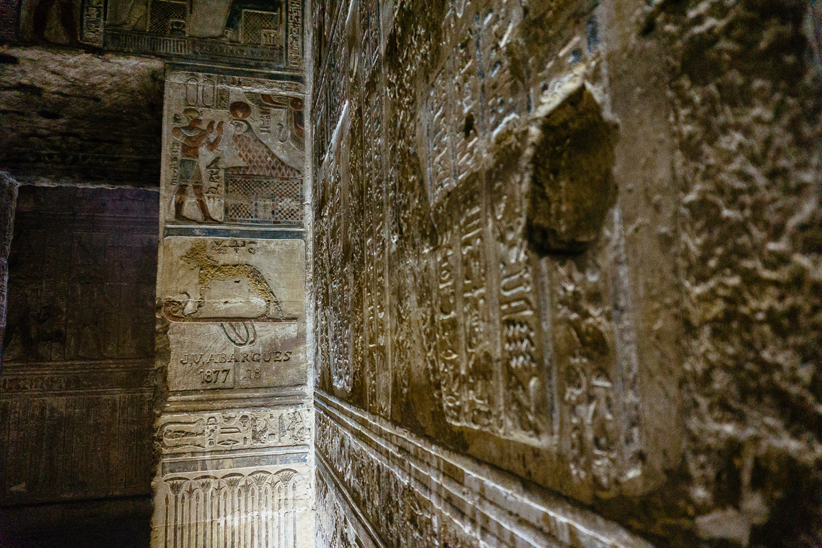 In the end, the temple (and monumental stone gateway) was finally completed under the Roman emperor Trajan, who you can see depicted on the walls of the complex making offerings to Hathor.