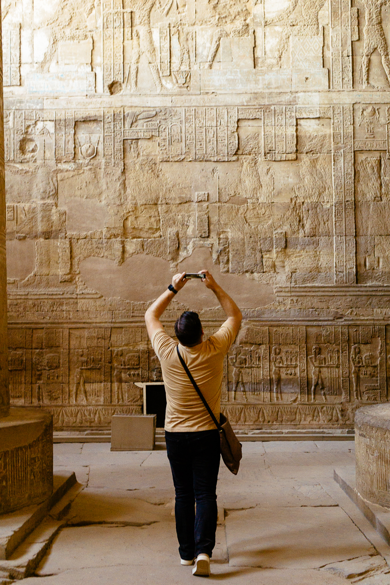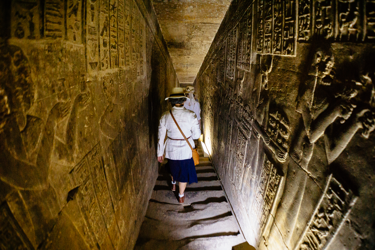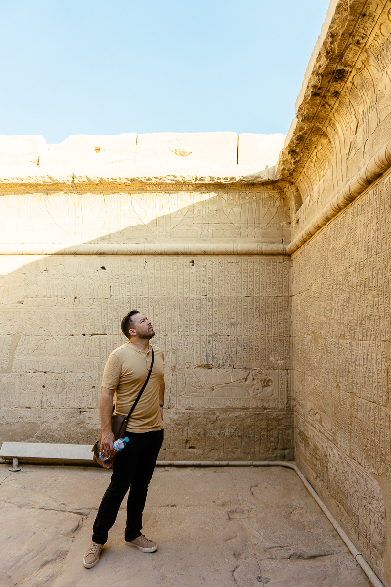After exploring the first level of the temple we ascended a stone corridor that spiraled all the way up to the roof (mimicking the path a bird would take to ascend into the sky, nice little nod to Horus right there…).