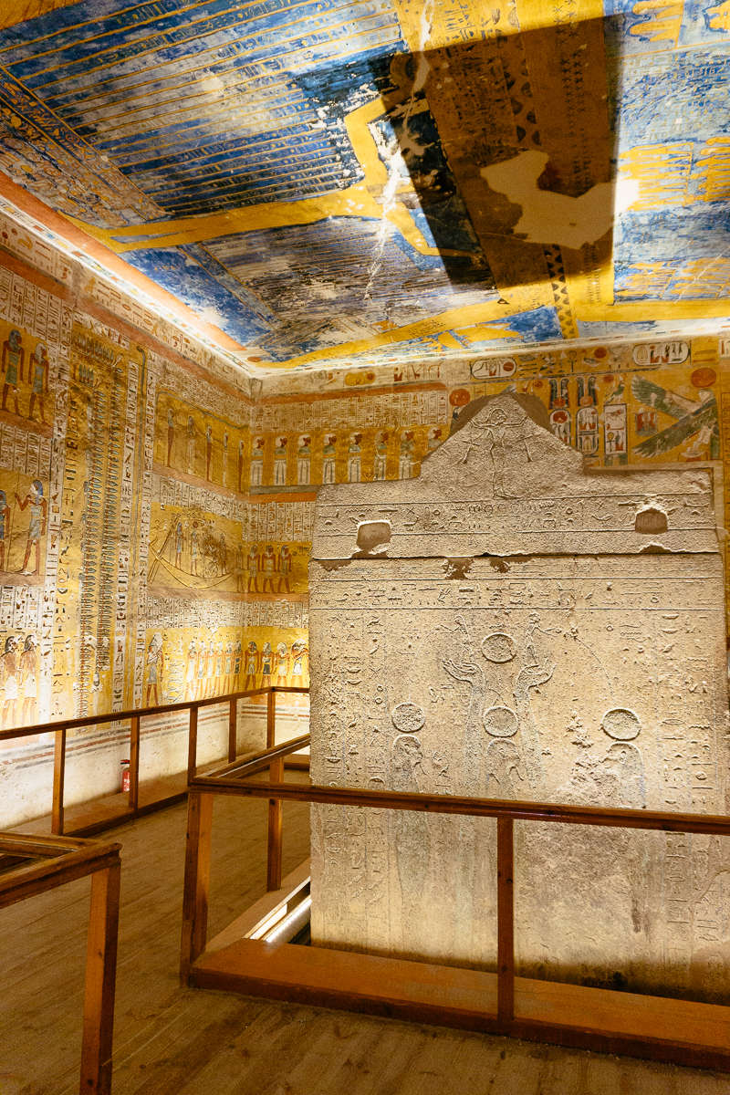 Yes this tomb is tiny. And a lot of people decide not to pay the extra money to go in. I mean it’s basically just two sort of smallish rooms with two attached storage annexes totally just under 1,200 SF of space. It’s not even that well painted, carved or decorated. The whole thing feels like the rush job that is was. On top of that, all the fun gold sparkly stuff has been moved to the Egyptian museum in Cairo, so you won’t find any treasure here.