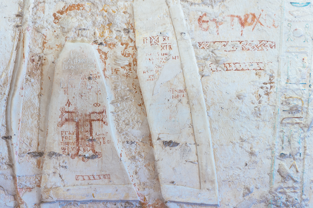 This tomb, like the others, has been a well trod tourist destination since antiquity, partially due to a small misunderstanding associating the tomb with the greek hero Memnon. One ancient Greek graffiti artist even inscribed this little note on the side of the tomb: